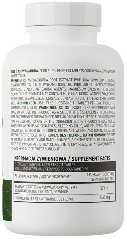 Склад OstroVit Ashwagandha на 1 порцію (1 таблетка.):