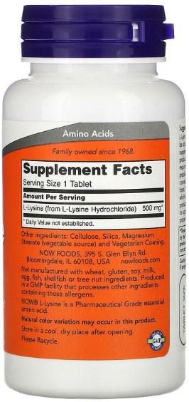 Now Lysine - незамінна амінокислота, яка не може бути вироблена організмом і надходить в організм лише з їжею та добавками. Лізин входить до складу білків, у тому числі і м'язових, тому їй надається велике значення у бодібілдингу. Останнім часом L-лізин все частіше привертає увагу як чудове додавання до вже і без того довгого списку поживних речовин для набору маси. L-лізин є основним будівельним блоком для всіх білків в організмі, а також відіграє важливу роль у засвоєнні, побудові м'язової тканини. Лізін також працює з незамінними амінокислотами для підтримки росту сухої м'язової ваги та покращення накопичення азоту вашим організмом, а також вона бере участь у побудові м'язів, впливаючи на їх зростання. Лізин та вітамін С разом утворюють Л-карнітин – для підвищення витривалості м'язів.