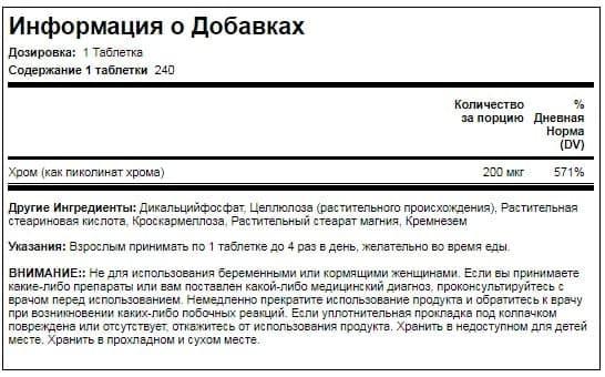 Властивості Piping Rock Chromium Picolinate: