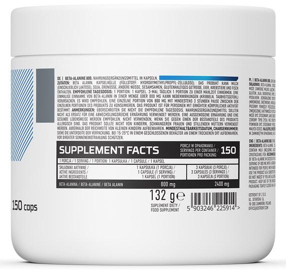 Склад OstroVit Beta-Alanine 2400 на 1 порцію (1 капсула):