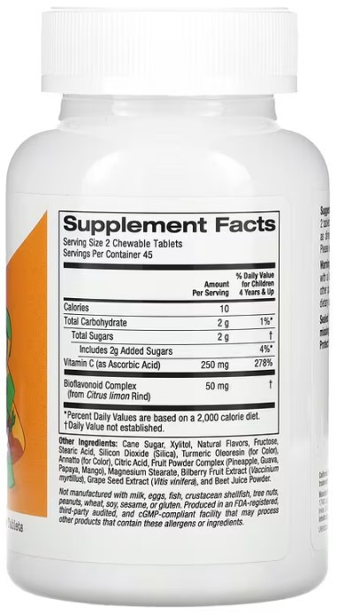 California Gold Nutrition KIDS Chewables Vitamin С - це вітамінний комплекс, створений спеціально для дітей, щоб підтримувати їхній імунітет, здоров'я шкірного покриву та загальне самопочуття. Формула продукту розроблена з урахуванням потреб зростаючого організму, включаючи оптимальне дозування вітаміну С у кожній таблетці. Важливо, що кожна таблетка має приємний смак, завдяки чому діти приймають їх із задоволенням.
