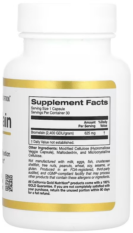 Бромелайн особливо корисний людям, які страждають від проблем із ШКТ, запалень суглобів, м'язових болів та поганого засвоєння білка. California Gold Nutrition Bromelain 625 mg виготовляється з високоякісної сировини, не містить ГМО, глютен та шкідливих добавок, що робить його безпечним для регулярного прийому.