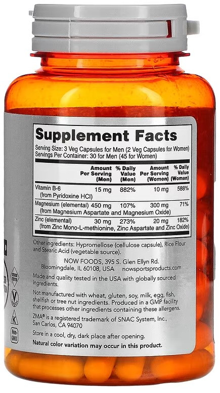 Цинк - мікроелемент, який зустрічається у морепродуктах, горіхах, бобових та м'ясі. Але навіть за різноманітного раціону його рівень може коливатися.У комплексі Now ZMA використовується цинк в органічній формі (моно-L-метіонін та аспартат цинку), що робить його більш біодоступним у порівнянні з неорганічними формами.