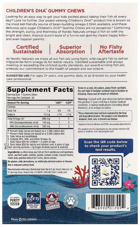 Не кожна дитина любить рибу, а деякі сім'ї вживають її нечасто. Саме тому бренд Nordic Naturals розробив зручний формат добавки – жувальні цукерки Children's DHA Gummy Chews 600 mg. Вони поєднують у собі смачні ласощі та джерело омега-3, що робить їх практичним рішенням для батьків.