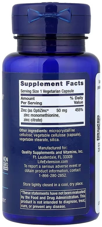 Добавка Life Extension Zinc Caps допомагає заповнити цей елемент у раціоні, особливо людям, які ведуть активний спосіб життя або дієт, що дотримуються, з обмеженням продуктів тваринного походження.