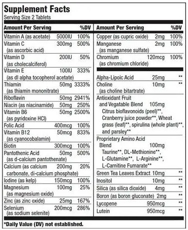Комплекс вітамінів та мультимінералів з додаванням амінокислот та антиоксидантів.